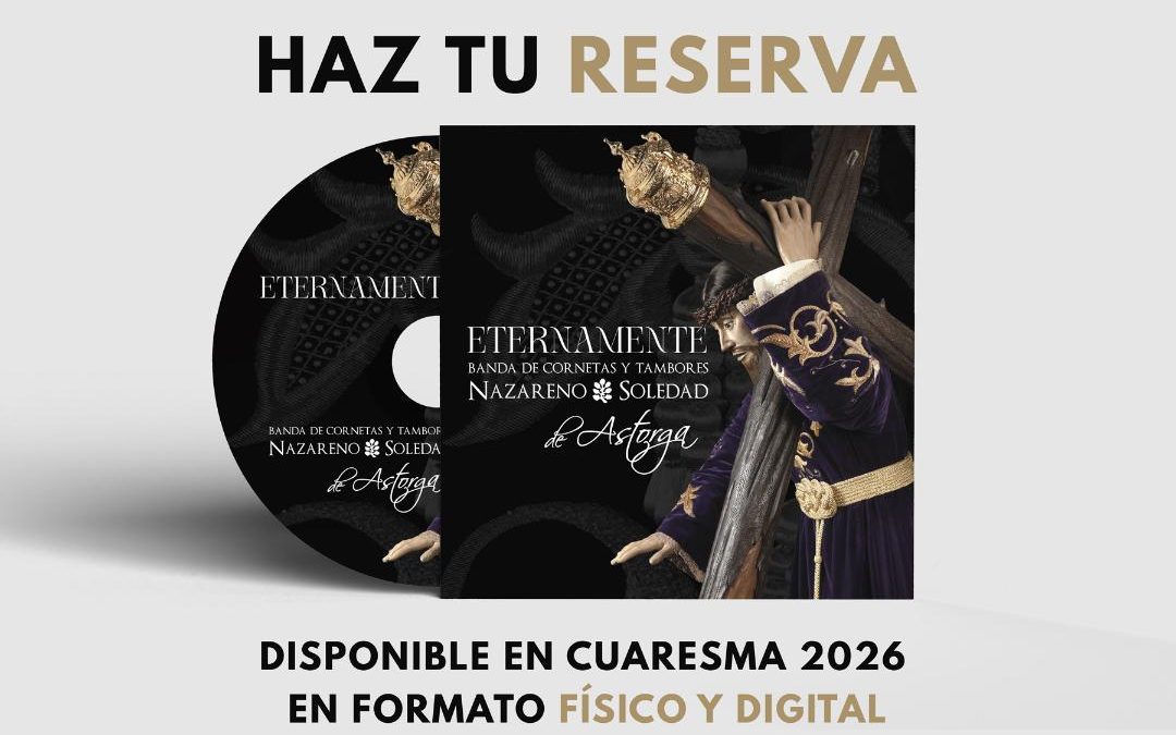 La Banda de Cornetas y Tambores de Nuestro Padre Jesús Nazareno y María Santísima de la Soledad de Astorga (León) ha anunciado el lanzamiento de su primer trabajo discográfico completo, titulado ‘Eternamente’, cuya salida está prevista para la Cuaresma de 2026.